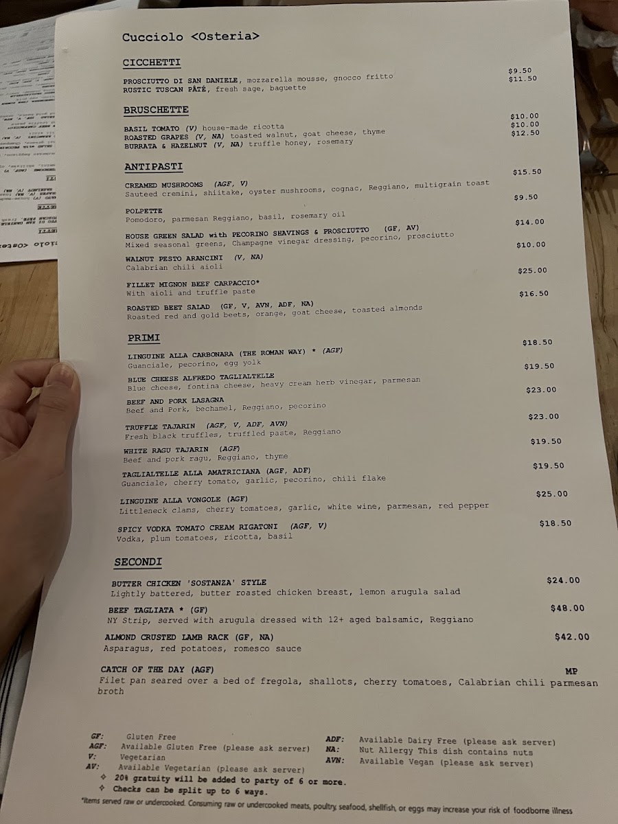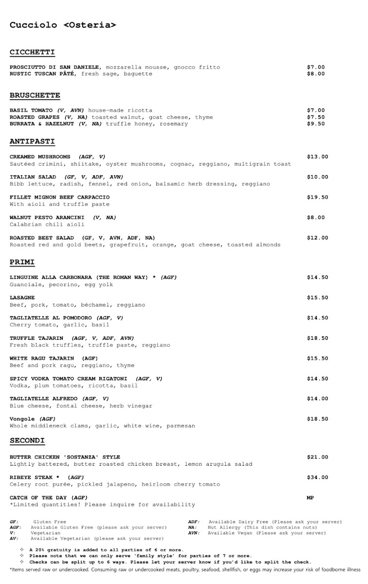 What sets Cucciolo Osteria apart is not just the exquisite dishes, but the heartfelt service. With attentive staff who are always ready to guide you through the menu and make recommendations, your experience is set to be memorable. Reviews highlight the friendly demeanor of the team, who are eager to accommodate special requests and ensure your dining experience is nothing short of exceptional.