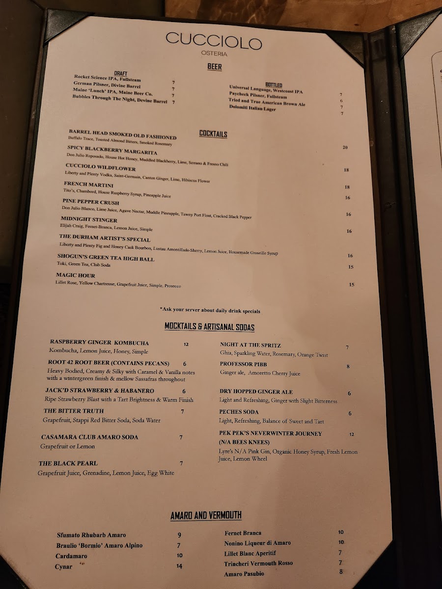 Welcome to Cucciolo Osteria, an Italian culinary haven nestled in downtown Durham, North Carolina. From the moment you step into this charming establishment, you are enveloped in a vibrant atmosphere where industrial chic meets modern Italian flair. The exposed brick and cozy ambiance create a perfect setting for both intimate dinners and casual gatherings, although some diners note the echoes of excitement in the air that can make conversations a little lively!